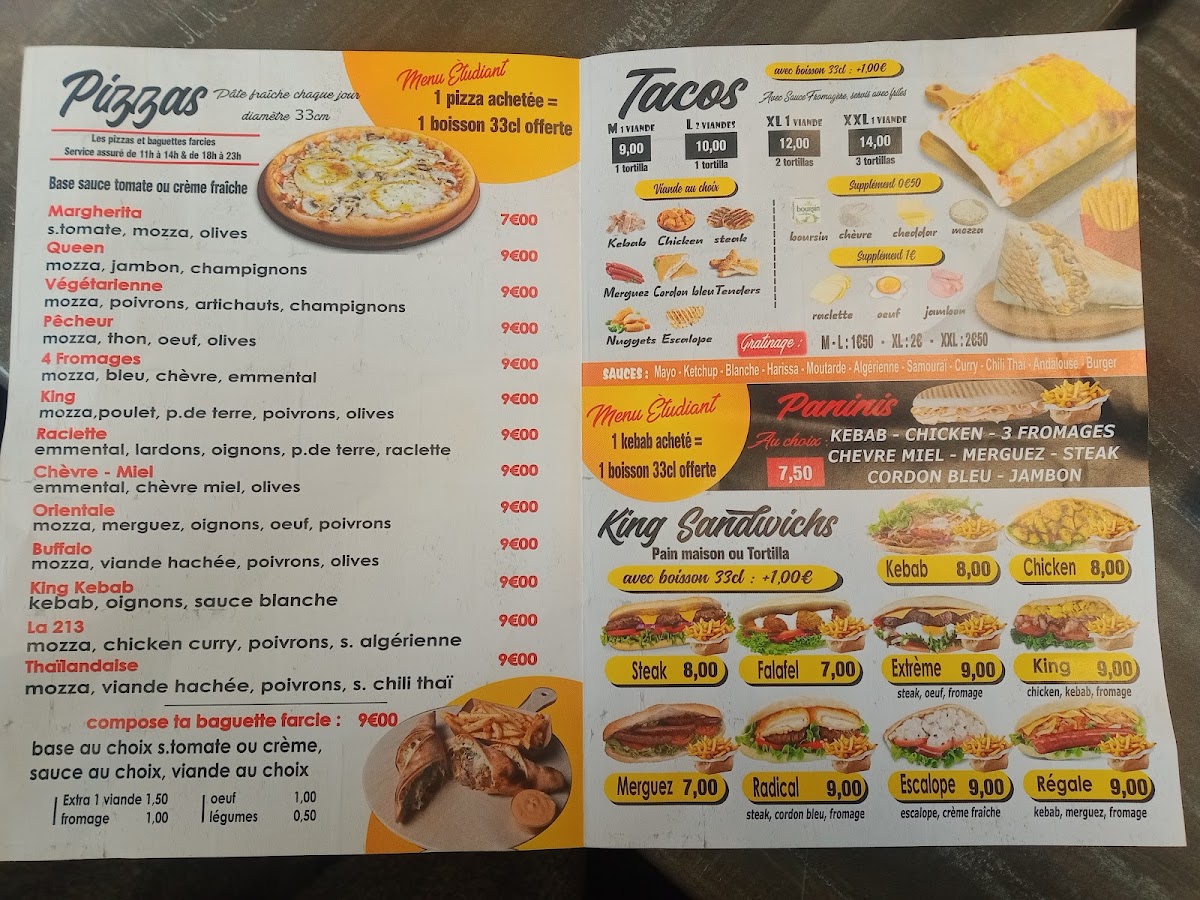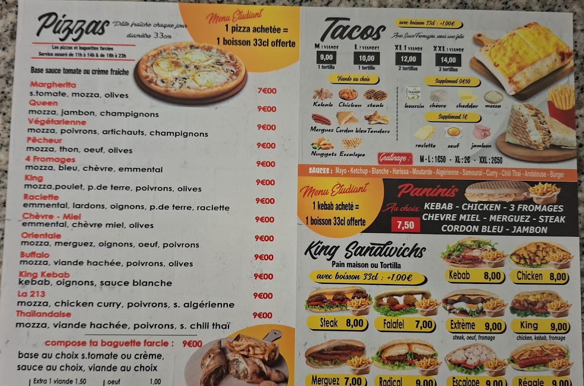 King Food, located in Clermont-Ferrand, is a culinary gem that masterfully blends quality and authenticity in fast casual dining. Their menu shines with handcrafted pizzas, prepared right before your eyes, delivering a perfect balance of fresh ingredients and melted, gooey cheese. Customers rave about the incredible taste and generous portions, highlighting the kebabs and double cheeseburgers as satisfying options that never compromise on flavor.